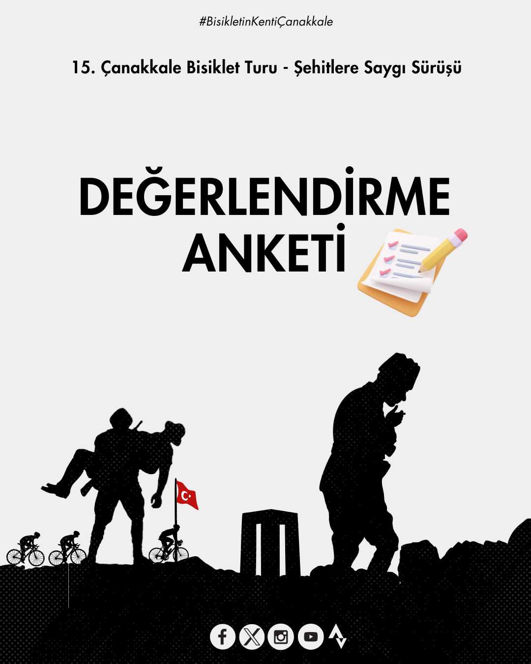 15. Çanakkale Bisiklet Turu Şehitlere Saygı Sürüşü’nün sürüş rotasını, güvenlik önlemlerini, bilgilendirmeleri, molaları, ikramları ve genel işleyişini değerlendirebileceğiniz değerlendirme anketi yayında!
