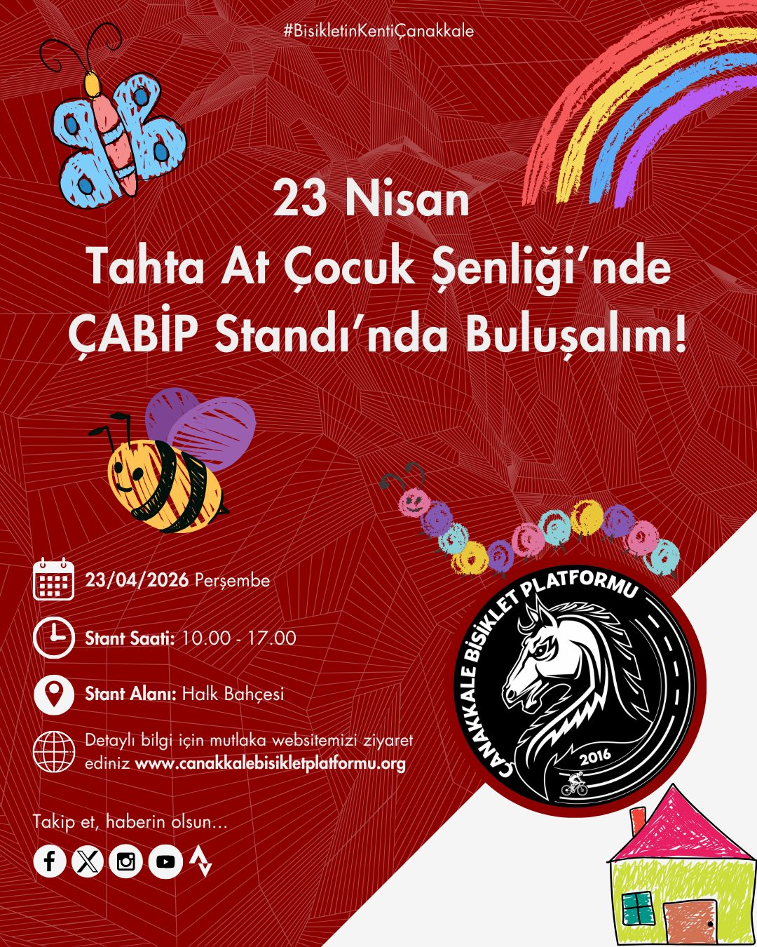 Tüm çocuklarımızı bisikletleri ile birlikte Tahta At Çocuk Şenliği’nde ÇABİP Standına bekliyoruz!