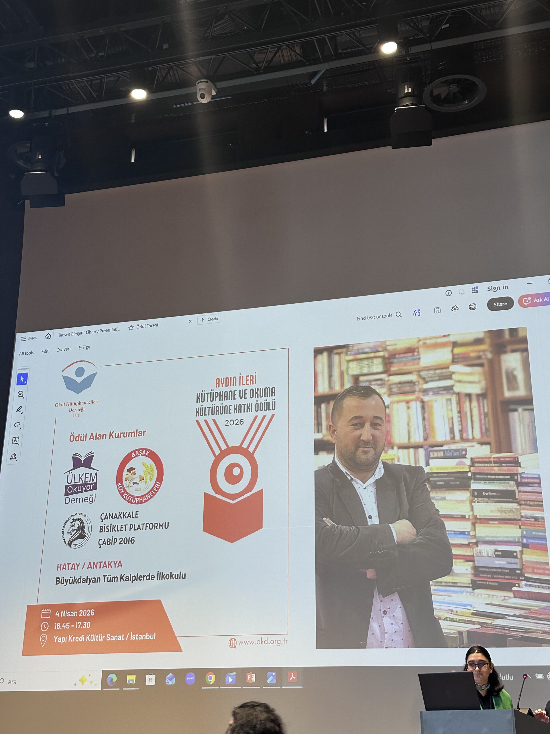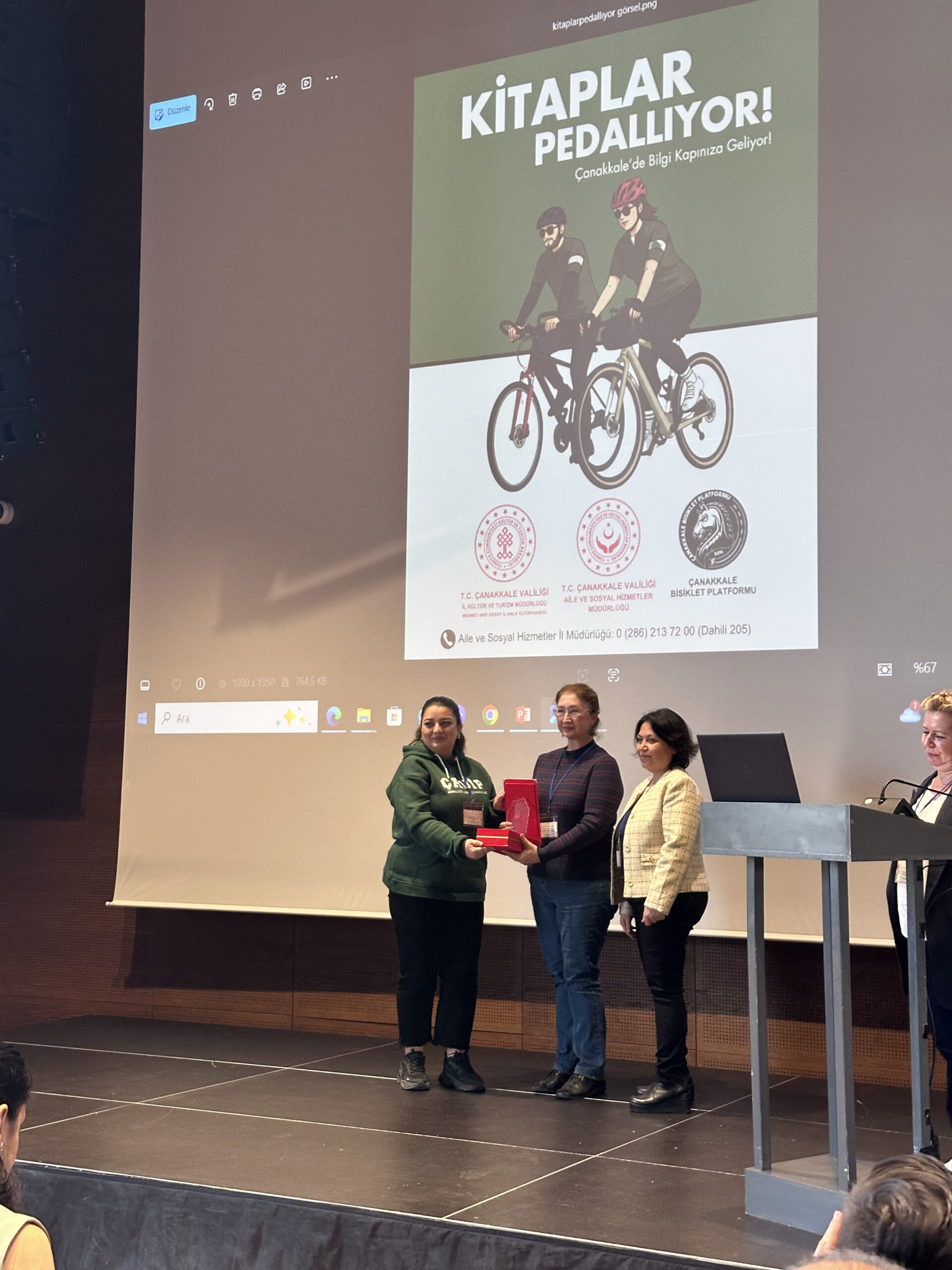 Okul Kütüphanecileri Derneği tarafından 62. Kütüphane Haftası kapsamında düzenlenen törende, Çanakkale Bisiklet Platformu olarak “Kitaplar Pedallıyor” projemiz ile layık görüldüğümüz ödülü büyük bir onurla teslim aldık.