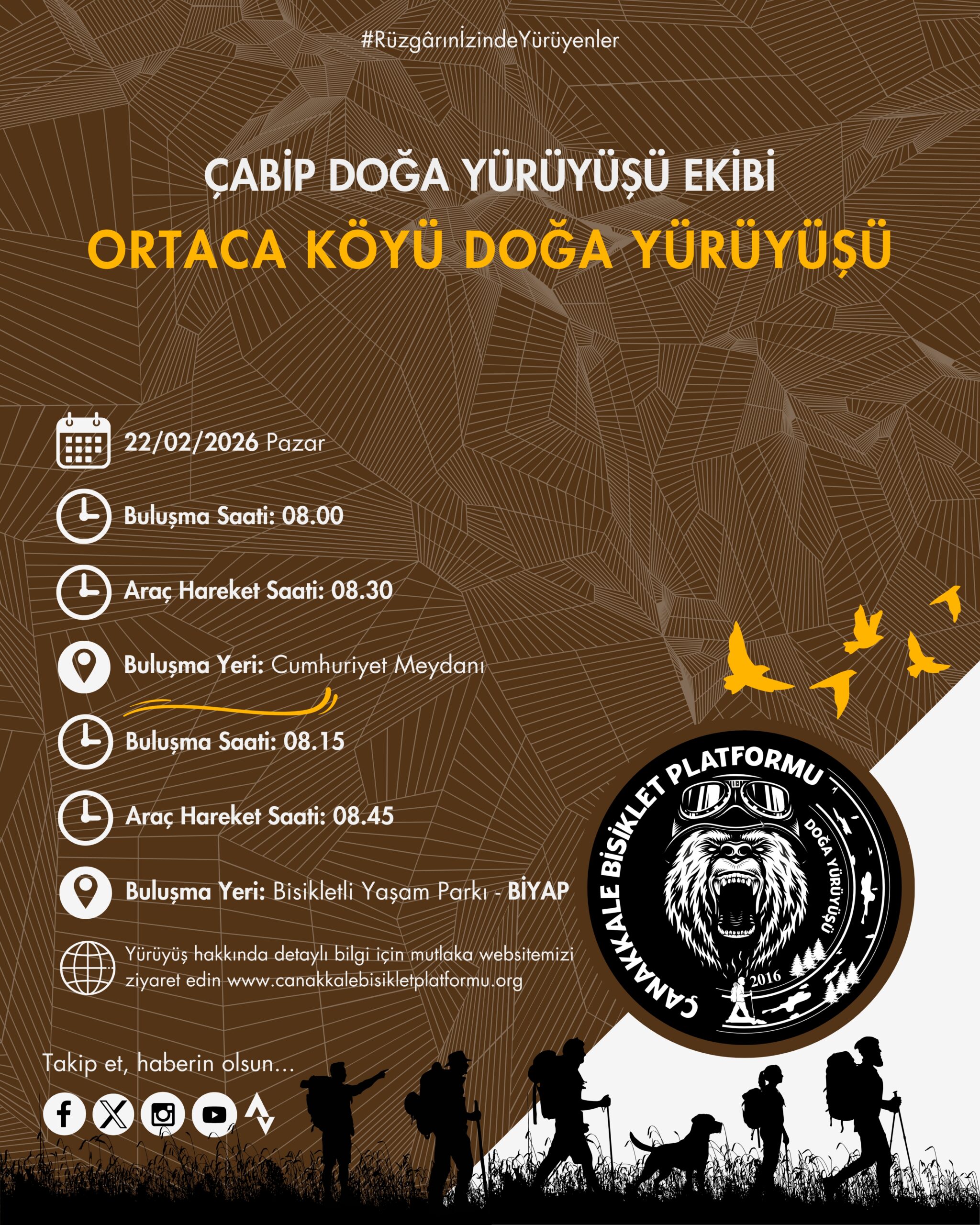 ◾ ÇABİP Doğa Yürüyüşü Gönüllüsü olmak için: https://www.canakkalebisikletplatformu.org/gonullumuz-olun/