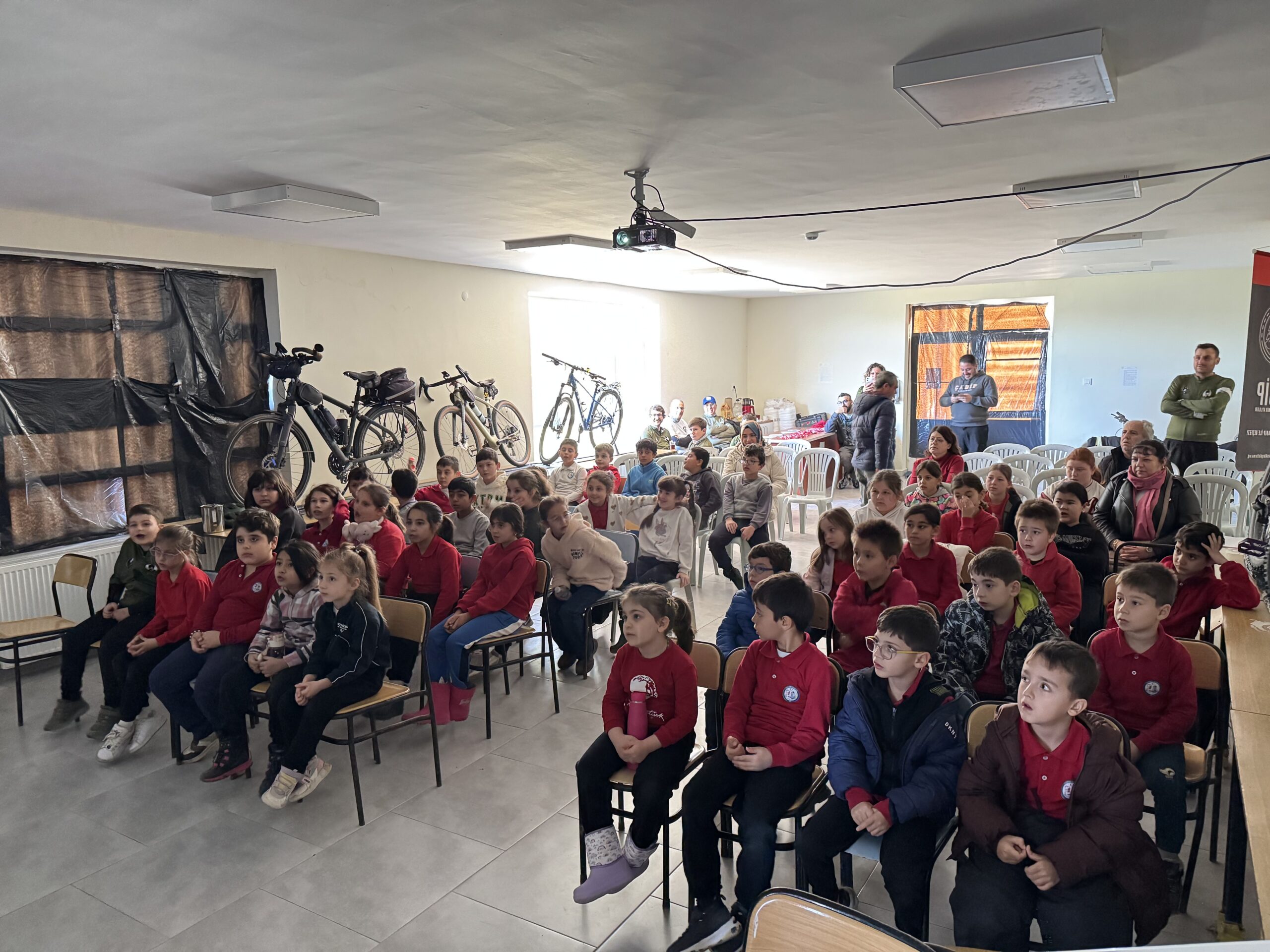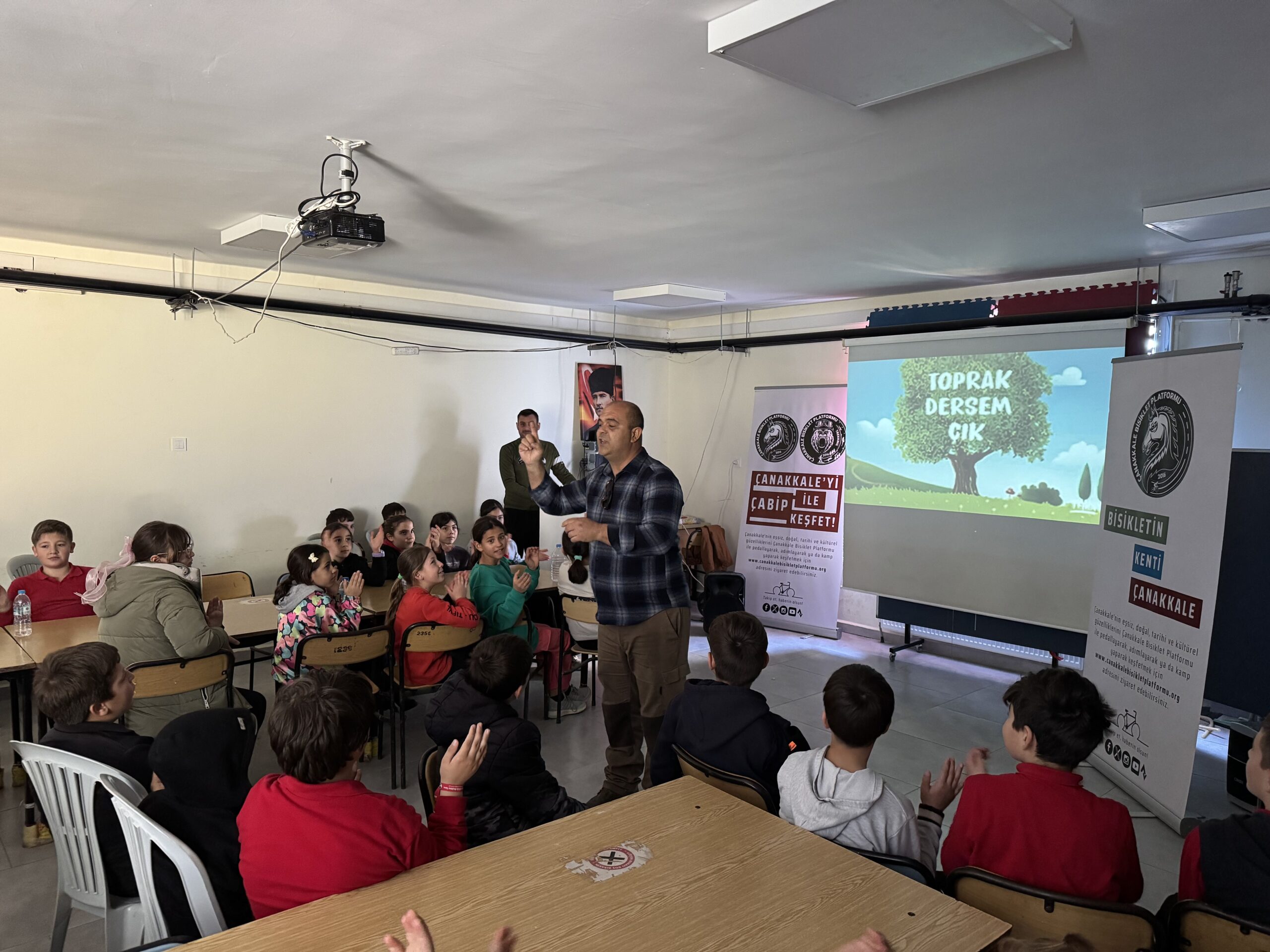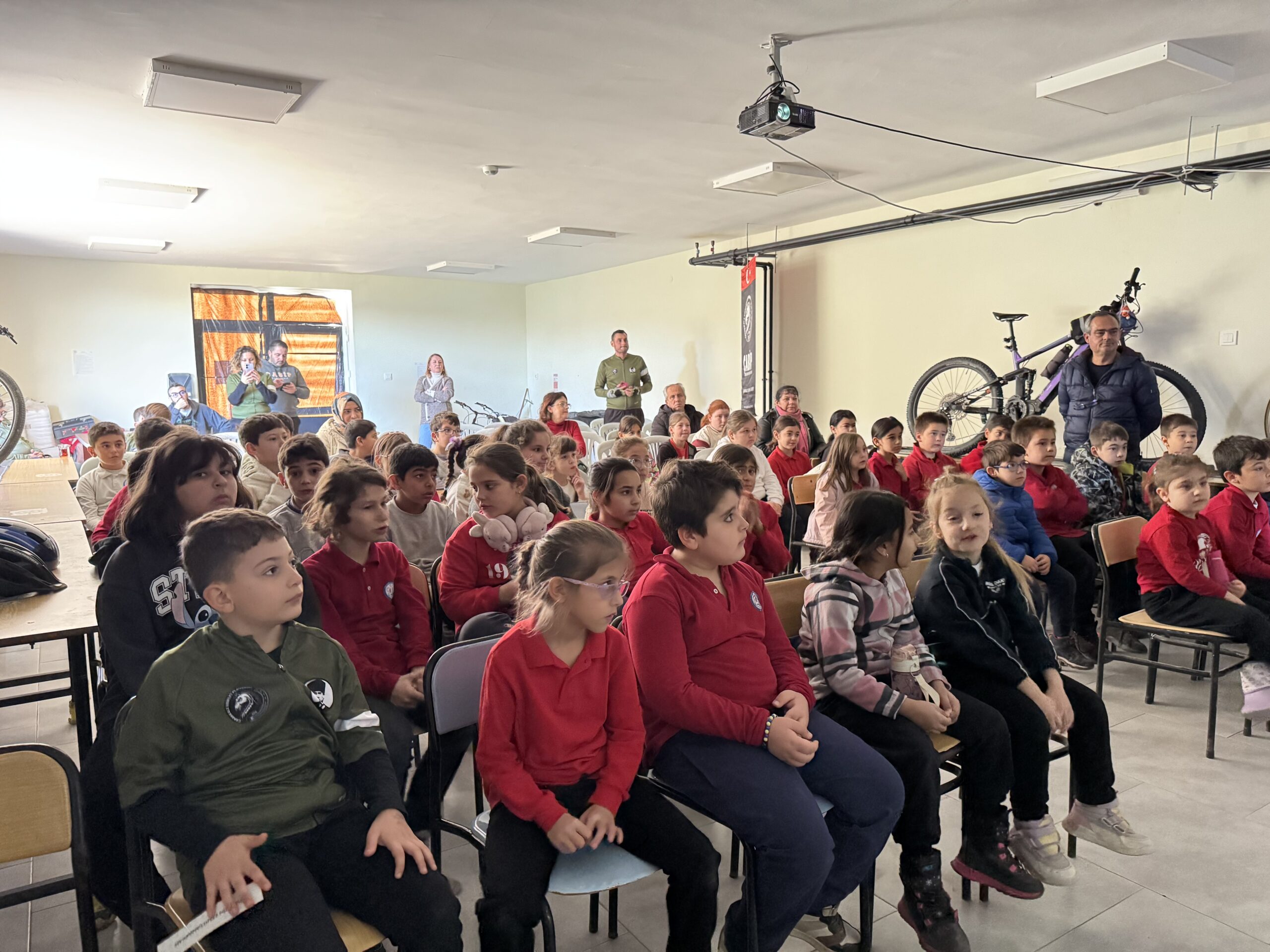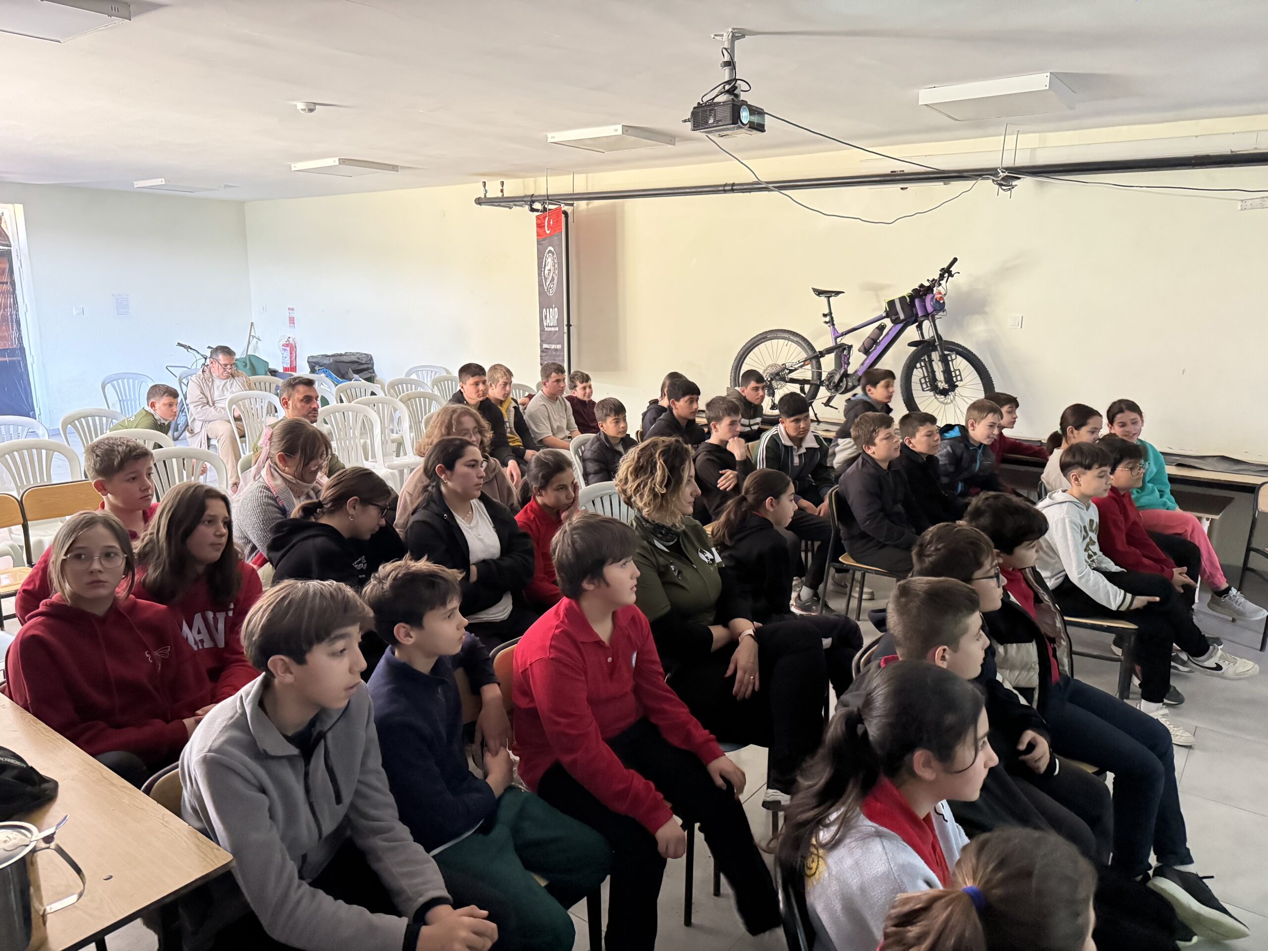 Erenköy Ortaokulu ve İlkokulu’nda Bisikletin Kenti Çanakkale mottomuz kapsamında Çanakkale Bisiklet Platformu kimdir, projeleri, bisiklet turları, doğa yürüyüşleri ve diğer faaliyetleri nelerdir, bisikleti tanıyalım, bisiklet seçimi, güvenli sürüş, bisikletlilerin yolu motorlu araç sürücüleriyle paylaşırken yapması gerekenler, 2918 Sayılı TCK KARAYOLLARI Trafik Kanununda Bisiklet, Karayolları Trafik Yönetmeliği’ne göre bisikletlerde bulunması gereken teçhizatlar ve soru-cevap şeklinde söyleşimizi gerçekleştirdik.