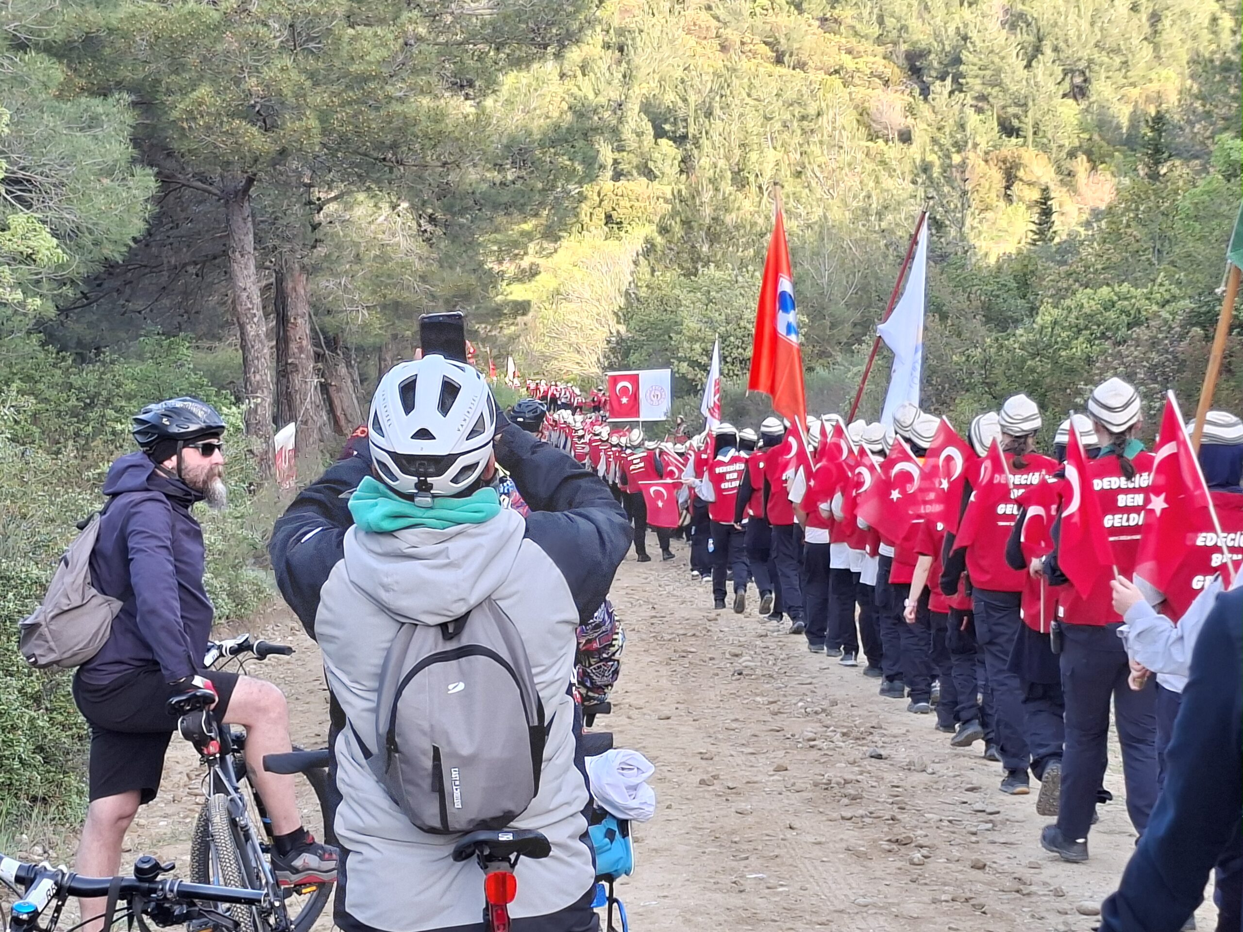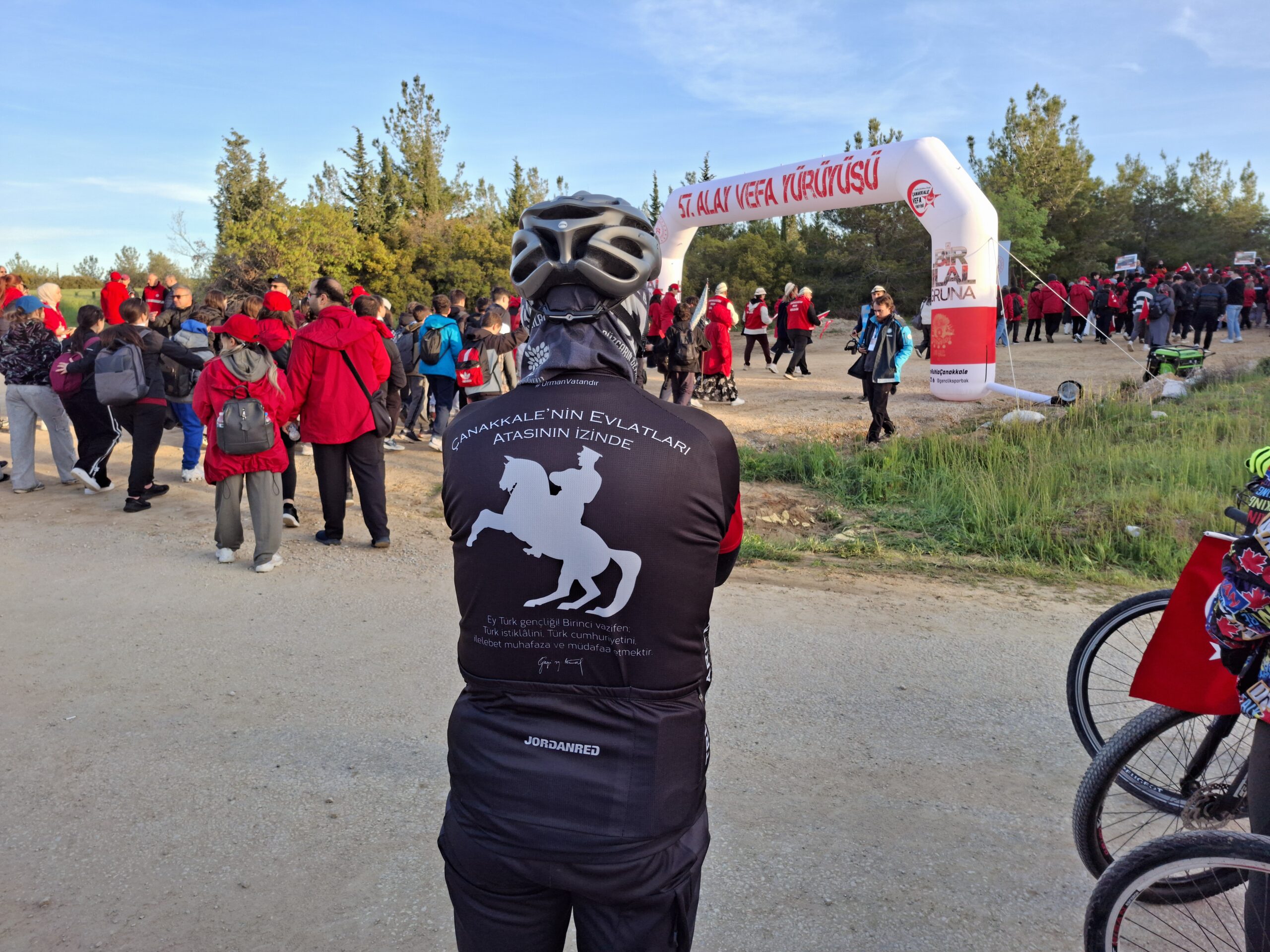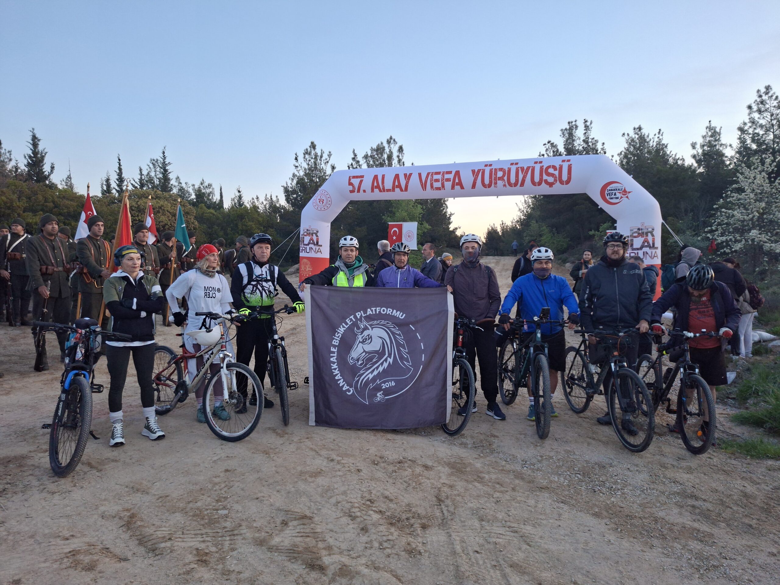 Çanakkale Bisiklet Platformu Derneği olarak 111. yıl önce bugün 57. Alay’ın yürüdüğü, Mustafa Kemal Atatürk’ün ayak izlerinin olduğu yolu demir atlarımız ile pedallayarak Çanakkale Ruhu’nu yaşatmak adına Kocadere Köyü Kamp Alanı’ndan başlayan “57. Alay Vefa Yürüyüşü’ne” katılım gösterip yaklaşık 5 kilometrelik yürüyüşü/sürüşü Conkbayırı’nda sonlandırdık.